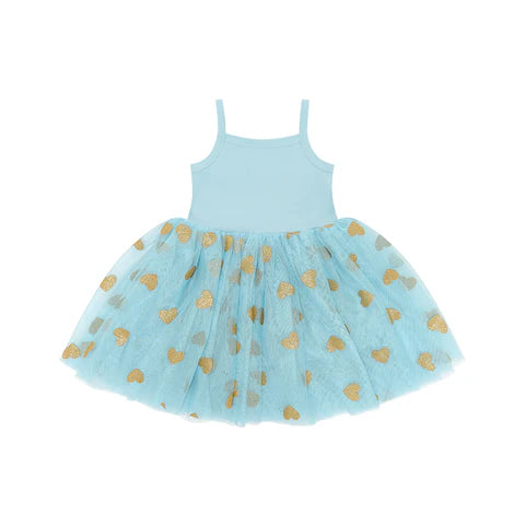 Bob & Blossom: Duck Egg & Gold Glitter Hearts Dress