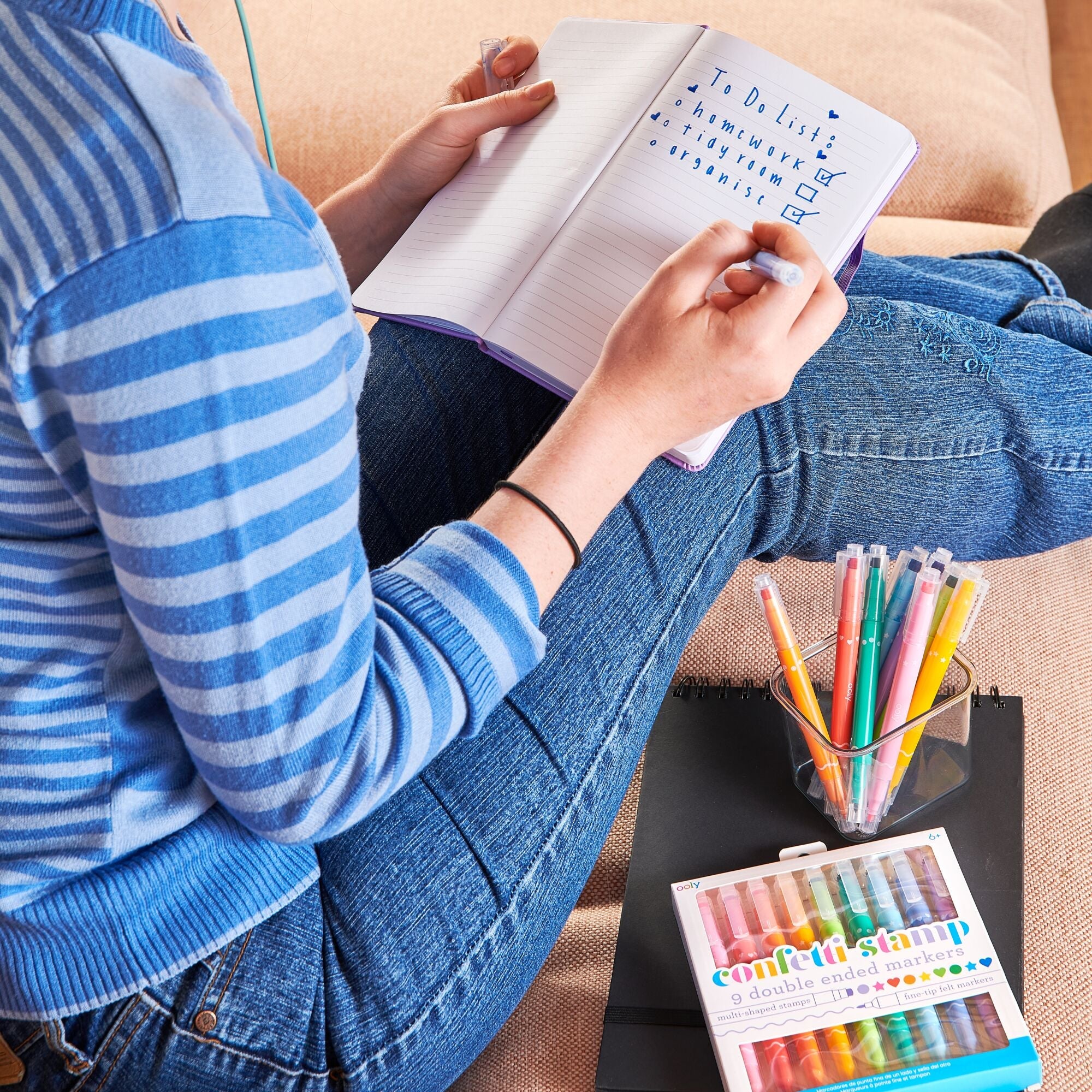 Get creative with the Ooly Confetti Stamp Double-Ended Markers. Each pen features a fine tip on one end for colouring and drawing, and a fun confetti-shaped stamp on the other. With nine bright colours and playful stamp designs, kids can decorate cards, journals, and art projects with endless imagination.