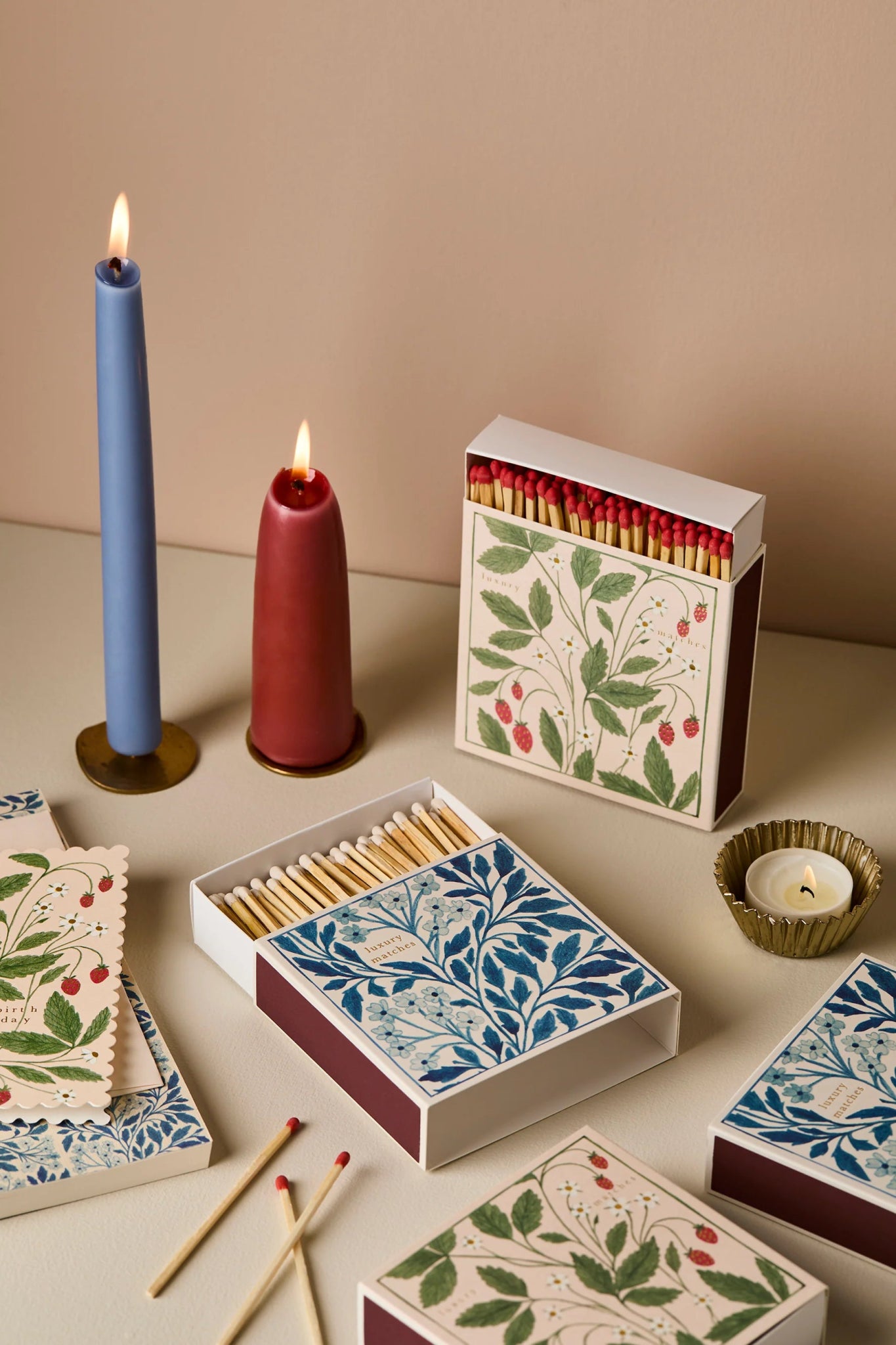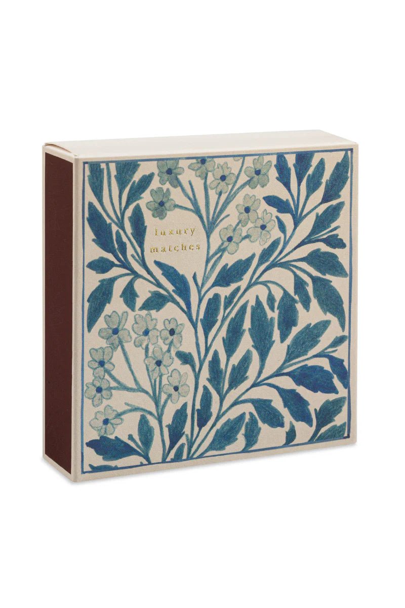 It's long been a dream of ours to collaborate with the incredible Wanderlust Paper Co., a fellow paper-lover and producer of beautiful illustration based in Hove, East Sussex. Finally, we are able to add to their stunning collection of matchboxes that celebrate the very best of Wanderlust Paper Co.'s work. "Blue Floral" is taken from their stunning Flora range, litho printed and finished with gold text, it makes a wonderfully romantic floral gift.
