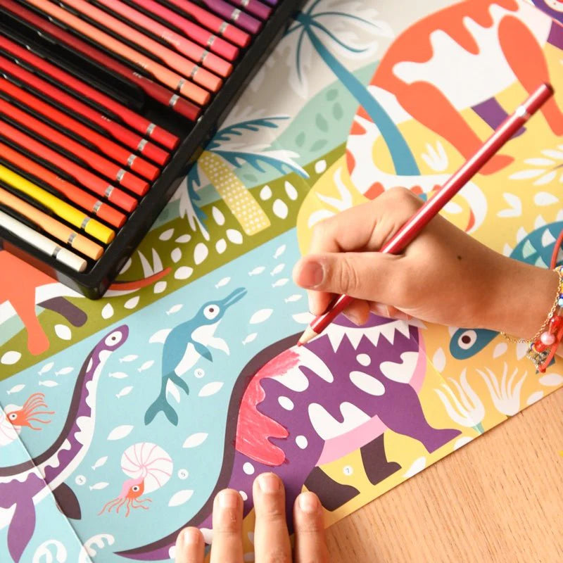 Bring dinosaur art to life with the Poppik Pre-Coloured Dinosaur Poster, a creative and educational colouring activity for children aged 4 years and up. Unlike traditional black-and-white colouring sheets, this poster is pre-coloured, helping children achieve a harmonious and visually stunning result with ease.