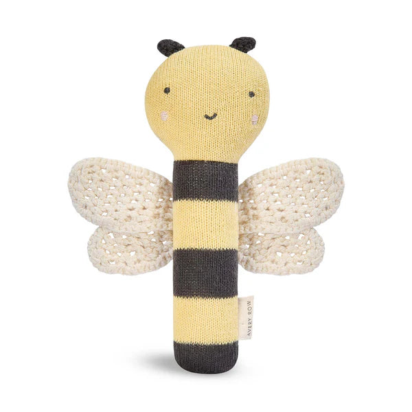 Meet your little one’s first friend - our Buzzing Bee Organic Cotton Rattle. Designed for tiny hands to grip, shake and squish, this sweet rattle brings joy to playtime while helping develop early motor skills. With its gentle sound, soft texture and adorable neck ruff this rattle makes an adorable new baby gift.