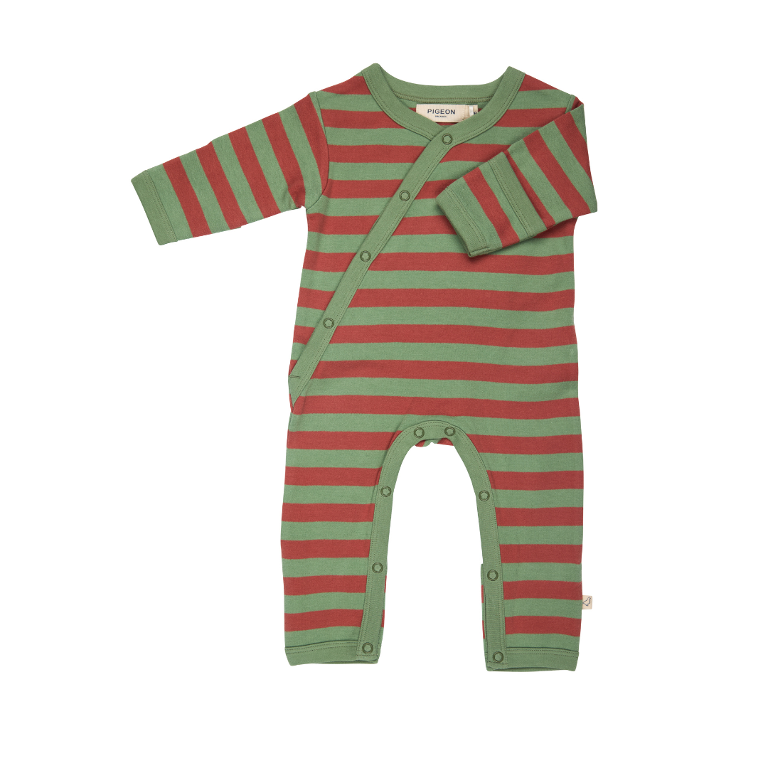 A true Pigeon Organics classic, this kimono-style baby romper is designed with both comfort and practicality in mind. Featuring a handy shoulder opening and poppers between the legs, it makes dressing and changing simple.