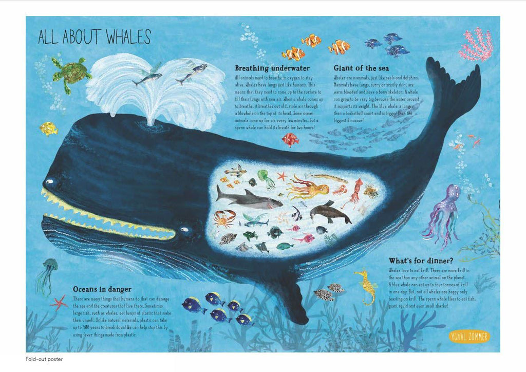 Have you ever wondered what might be inside a whale’s belly? Piece together this 70-piece, whale-shaped puzzle before peeking into its belly to spot plankton, fish, squid, octopus, and whatever else it might have had for lunch. The jumbo-sized puzzle, with design and illustration by Yuval Zommer, includes individual shaped pieces such as a shark, sea lion, crab and turtle – as well as a gentle introduction to the problem of marine plastic. The provided poster presents plenty of fascinating facts.