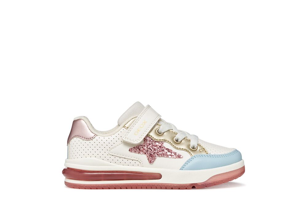 Geox: Sketlite Light-Up Trainers - White / Lt Rose