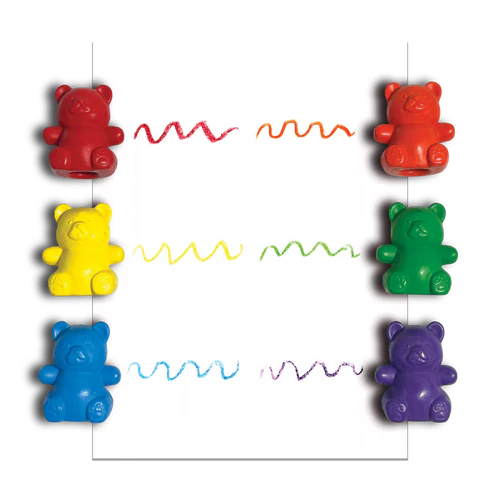 • Set includes crayons in red, blue, yellow, orange, purple, and green