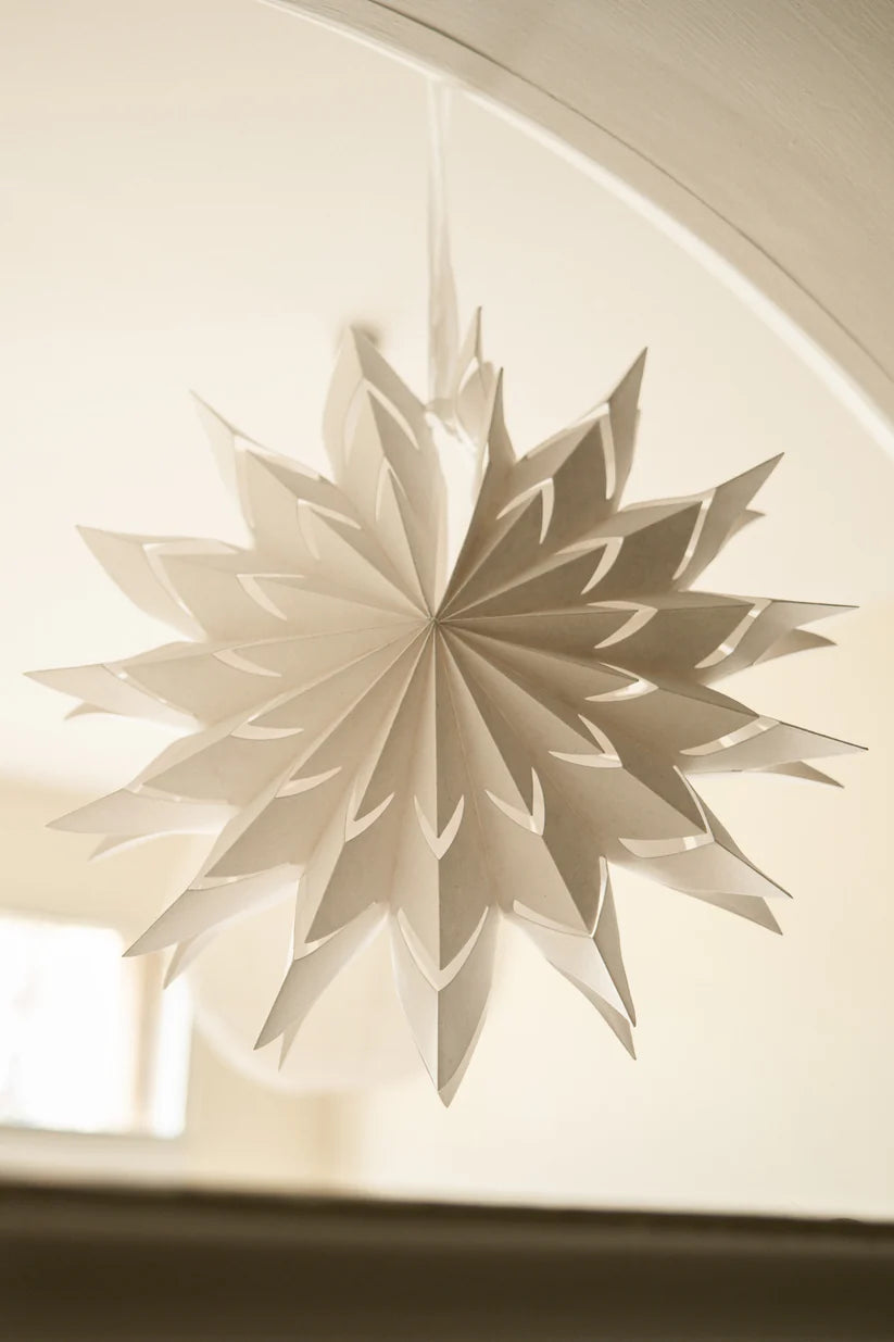 Add a touch of timeless elegance to your festive décor with the East End Press Small Traditional White Star. Hand-crafted from 100% recycled cotton pulp paper, this sustainably-made ornament is designed to be cherished and reused year after year.