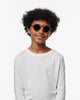 With their thin, lightweight pantos shape, the #d Light Tortoise kids’ sunglasses give a modern twist to a classic style. The tortoiseshell pattern stands out with its soft, luminous shades of beige and black, all enhanced by a Soft Touch finish. The frame is fitted with polarized lenses for maximum UV protection.