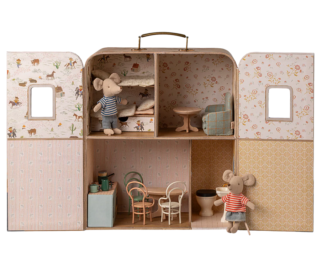 Welcome to SuitCasa - a small portable house. It fits the size: Littlebrother and sister mice. 2 sets of soft bedding for your friends are included but you can buy several of other small furnitures to decorate the house.Discover our beautiful Maileg collection, featuring charming Danish-designed toys that spark imagination and last for generations. From handcrafted mice and bunnies to adorable dollhouse accessories.