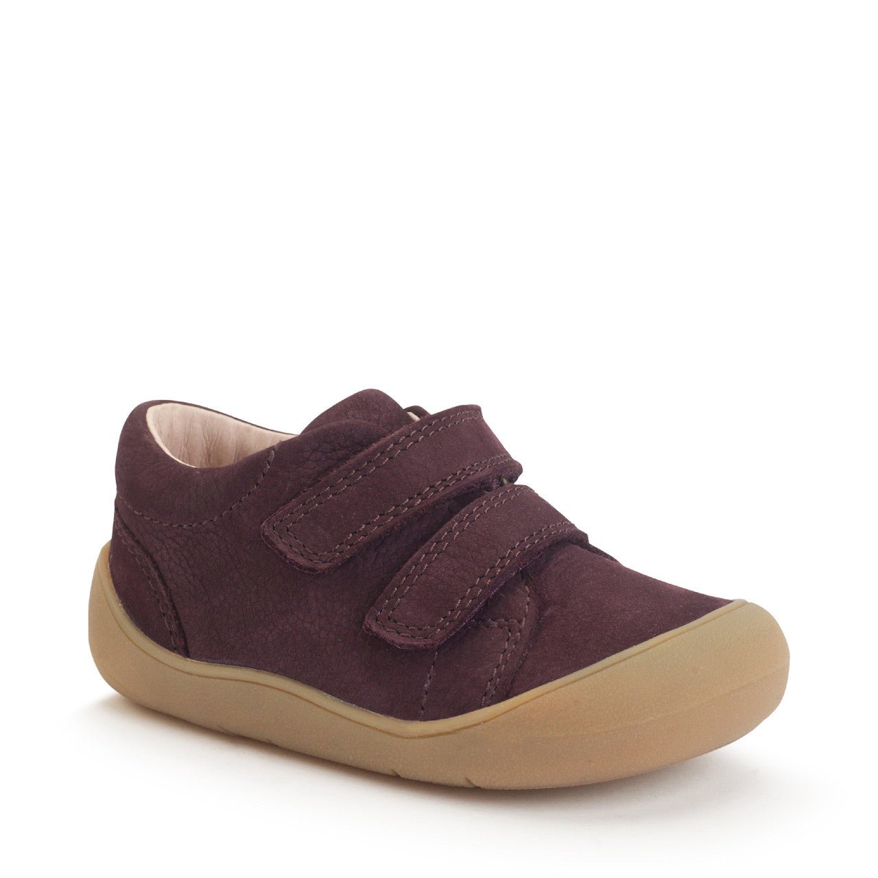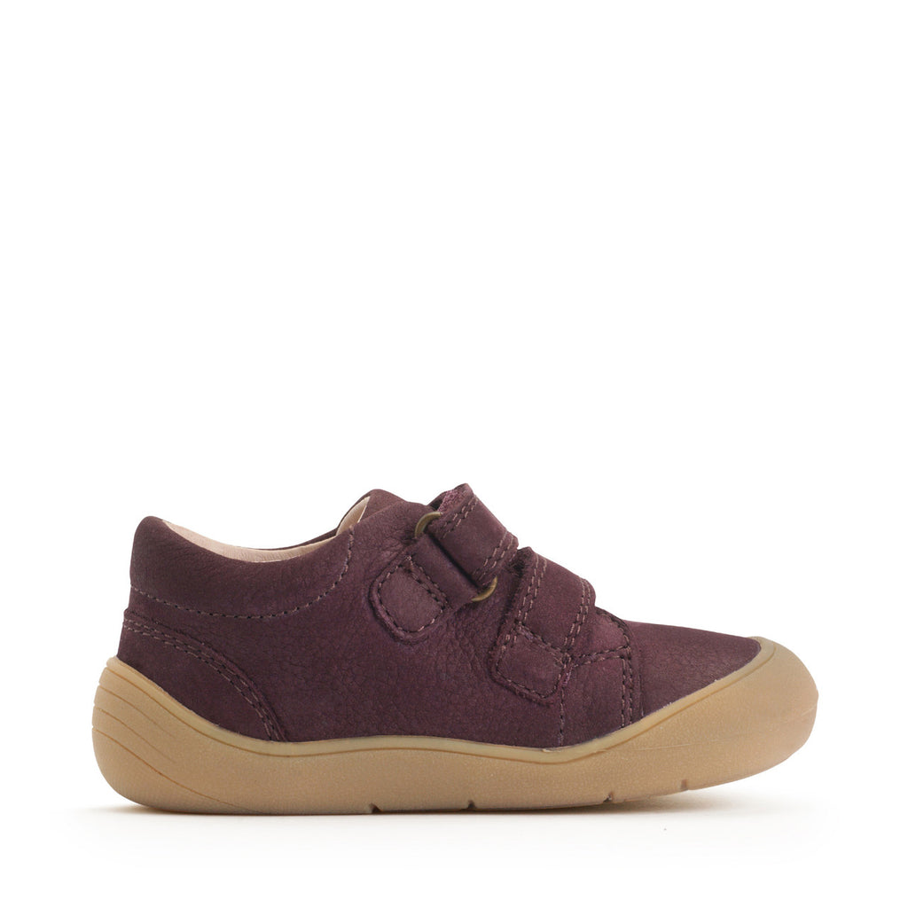 A minimalist first steps midi-boot, designed to nurture and protect developing feet. Crafted with a unit specifically tailored to small children's feet, it features a wider toe box, flex grooves, and a 'nature form' shape that supports every step. The boot is made from luxurious textured tumbled burgundy nubuck, offering both a timeless look and lasting durability. Perfectly designed to provide comfort, support, and flexibility, this boot helps little ones take their first steps with confidence, while its simple yet stylish design pairs effortlessly with any outfit.
