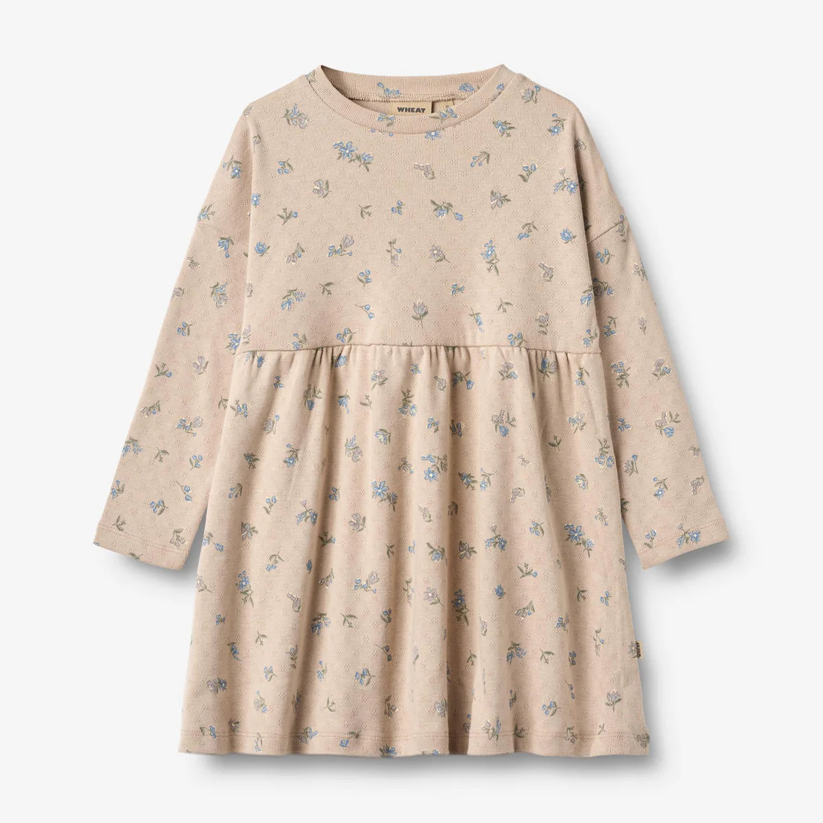 Wheat's sweet dress has a loose fit, which makes it easy and comfortable for your child to wear. The dress is perfect for the autumn and winter months and can easily be styled with some leggings and a long-sleeved T-shirt underneath together with a cardigan or knit on top.