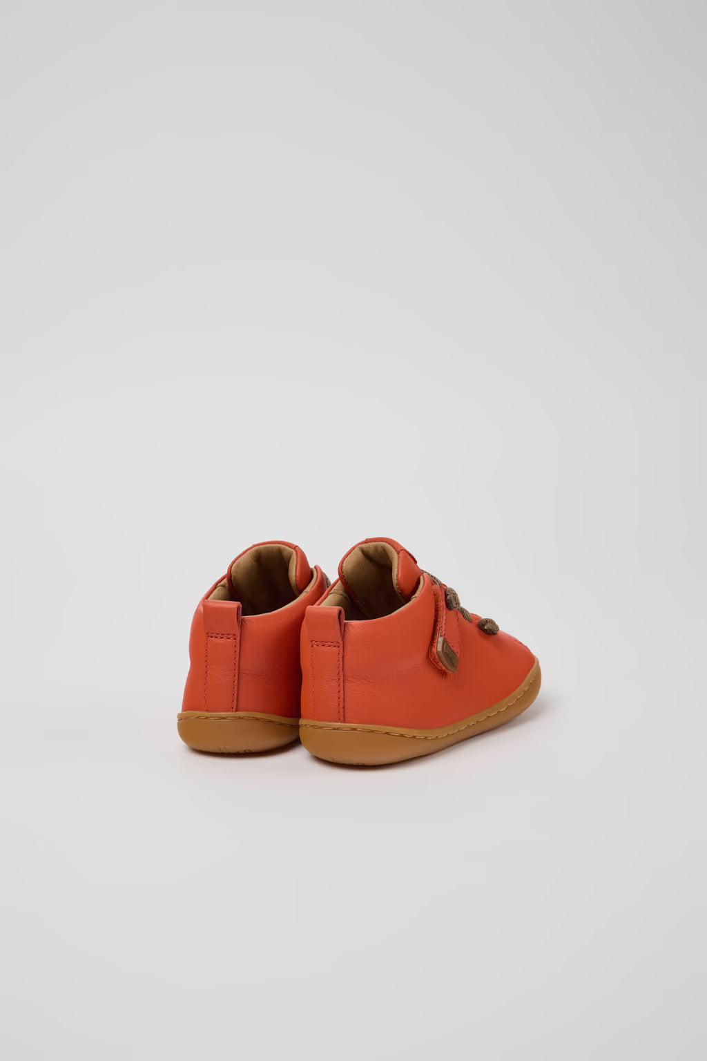 Step into comfort and sustainability with these orange calfskin leather kids’ ankle boots from Camper’s First Walkers range. Designed especially for toddlers learning to walk, these eco-friendly boots combine durability, flexibility, and stylish design—perfect for everyday adventures.