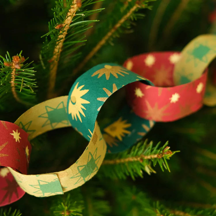 Create your own festive decorations with this East End Press Blue & Yellow Paper Chain Kit. Inside, you’ll find 160 double-sided paper strips, screen-printed by hand in Jaipur with bold patterns in vibrant blue and yellow. Once assembled, they form up to ten metres of classic paper chains – the perfect way to add colour and cheer to any party, celebration, or seasonal display.