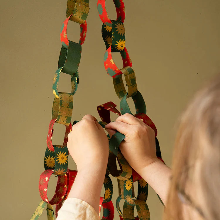 Made entirely from recycled materials and printed on both sides, these eco-friendly paper chains look beautiful from every angle. Just add glue or staples to loop them together, and enjoy a timeless craft activity for all ages.