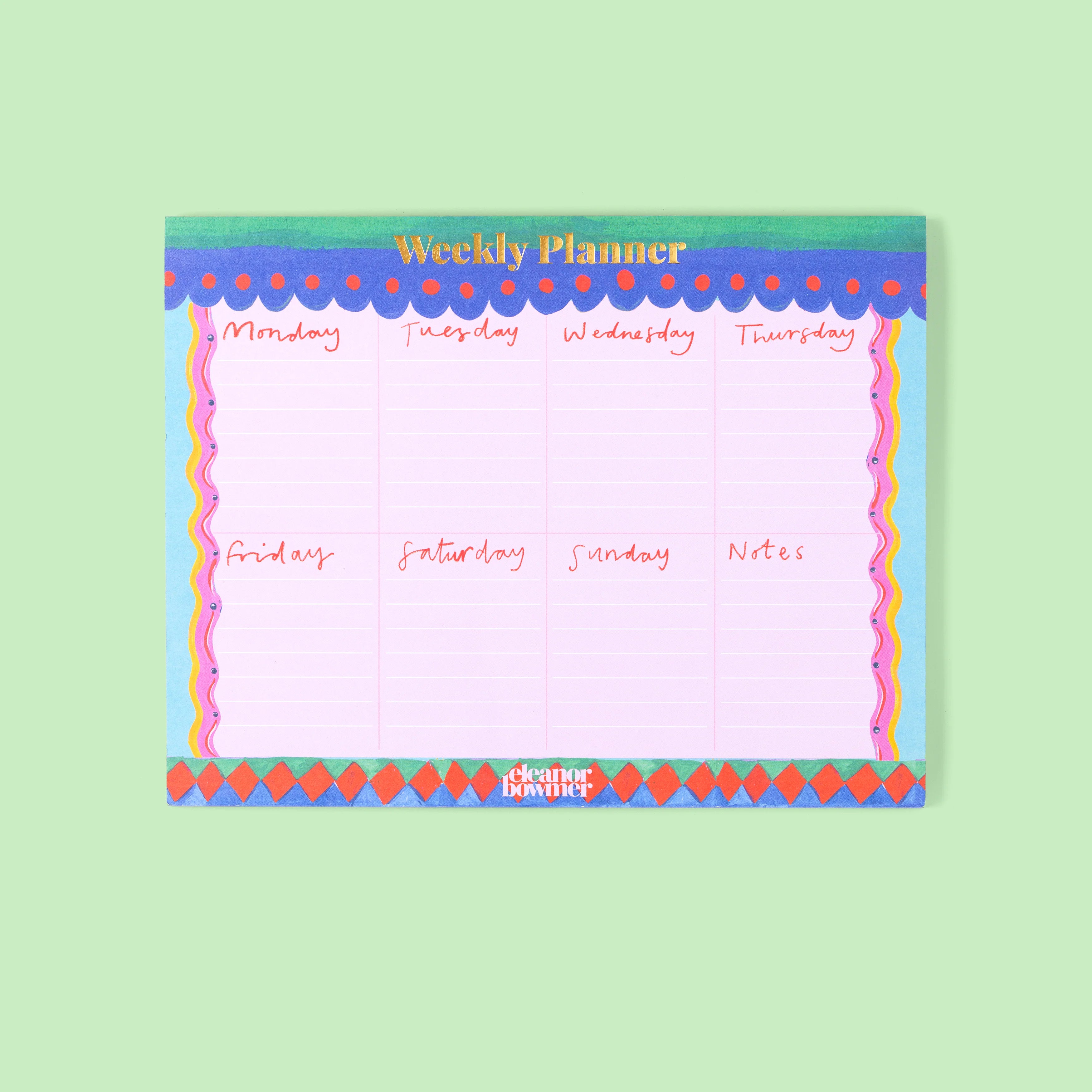 Planning just got prettier. This pastel weekly planner is all about getting organised without sacrificing style. With colourful wavy borders, space for each day plus extra notes, and gold foil ‘Weekly Planner’ at the top, it’s perfect for mapping out your week, planning meals, tracking deadlines or jotting down joyful little to-dos. As functional as it is fabulous.
