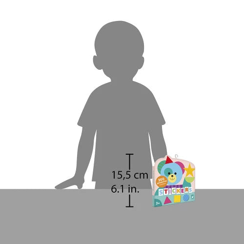 A sticker lover at home? This pack of 300 stickers on the theme of geometric shapes is suitable for children from 3 years old. With so many stickers, you can only be well inspired and busy... For a long time! To satisfy sticker fans, open this pretty pack in the shape of a little bear with a pointy hat and discover 16 different shapes (circles, triangles, hearts, diamonds, stars, etc.) in all colors! We become familiar with geometry and we have a blast with this pack of stickers! The size of the stickers has been specially designed to adapt to the hands of little ones: they measure approximately 3x3 cm. There are 150 plain stickers and 150 decorated with a printed pattern in this set. There is even a fluorescent pantone on 150 stickers. This pack of stickers is essential to occupy long journeys or to complete your drawings. By manipulating the stickers, your child develops his fine motor skills and creativity with ease! The bold colors and geometric patterns will pique his curiosity, to entertain him, sticker after sticker! We love this essential classic.