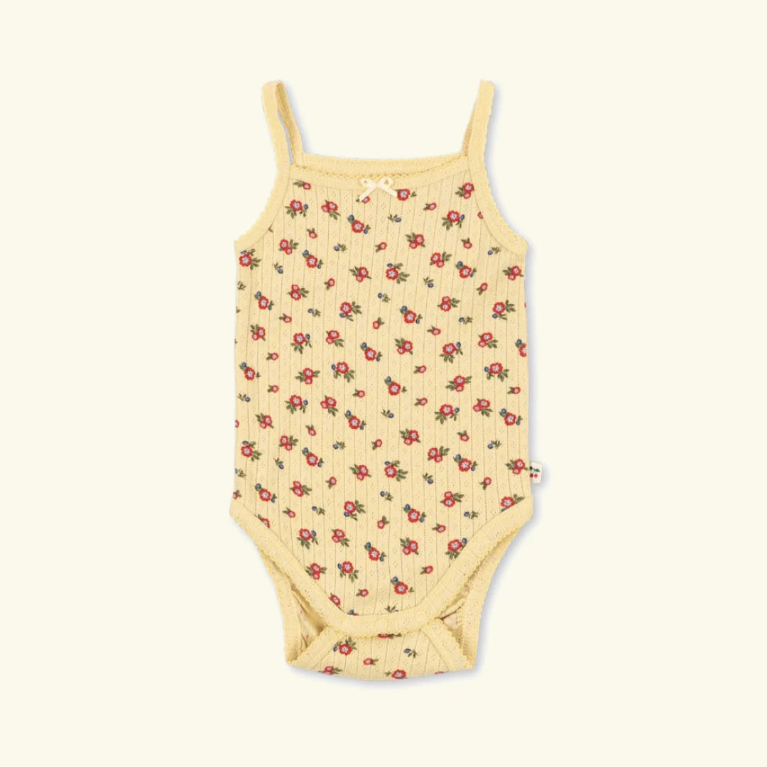 Soft body with slim shoulder straps. Crafted from 100% organic pointelle cotton with decorative picot edges.