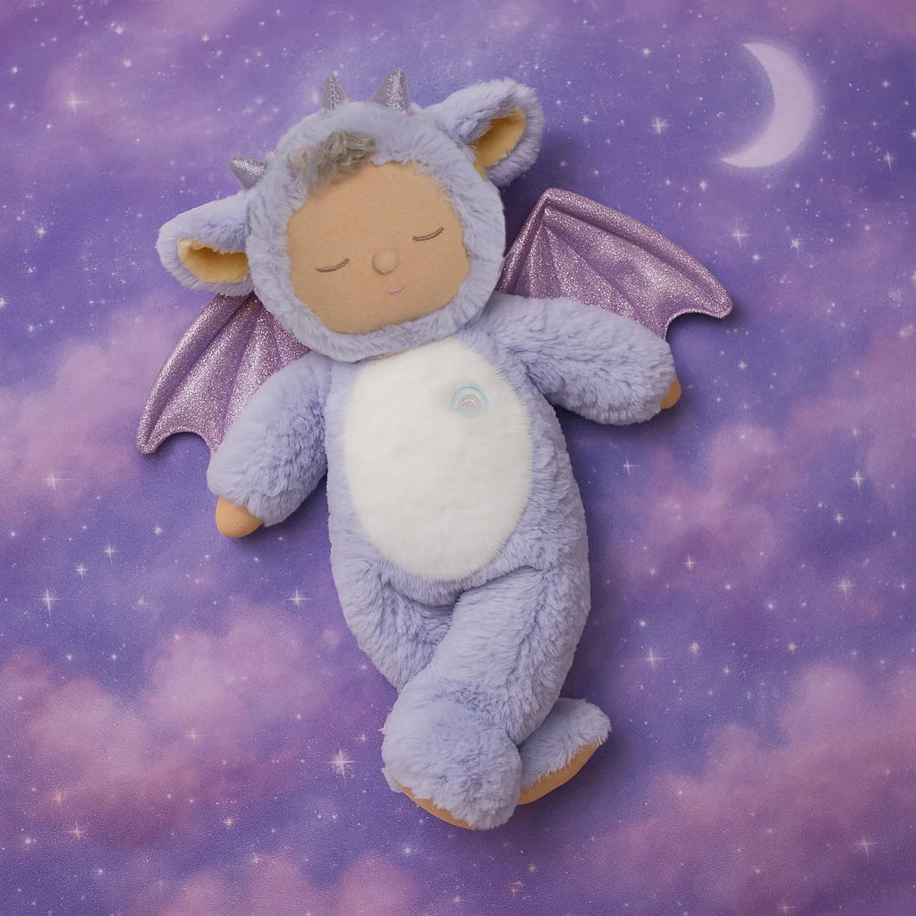 With twinkly iridescent wings and tiny sculpted horns, Rory is made for magical adventures and mellow moments alike. Gently weighted and fully posable, he offers a calming cuddle that’s just right for little hands.