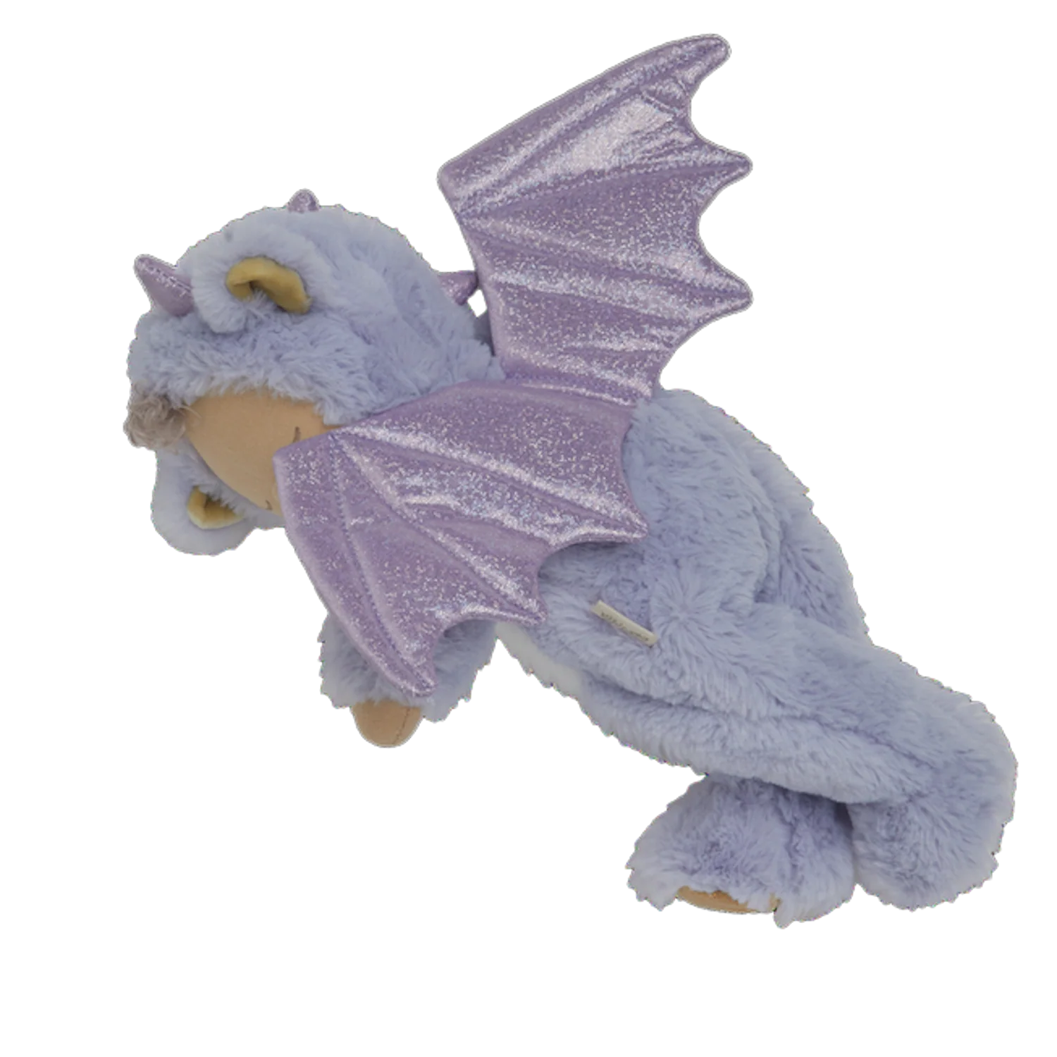 • Iridescent dragon wings and soft sculpted horns