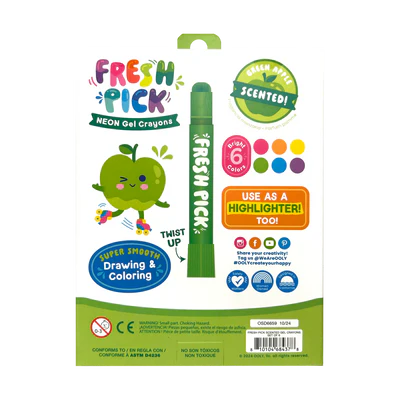 Ooly Fresh Pick Apple Scented Neon Gel Crayons - Set of 6