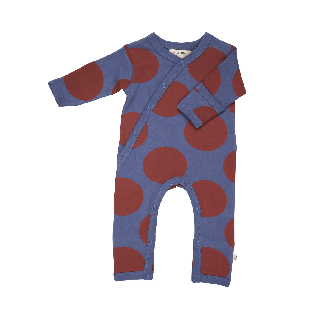 Pigeon Organics: Kimono romper, giant spot - orange / purple