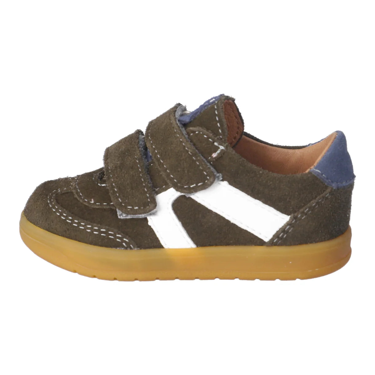 Finished in a modern forest green with white detailing and a contrasting navy heel patch, these trainers are both versatile and smart – ideal for nursery, school, or weekend adventures.