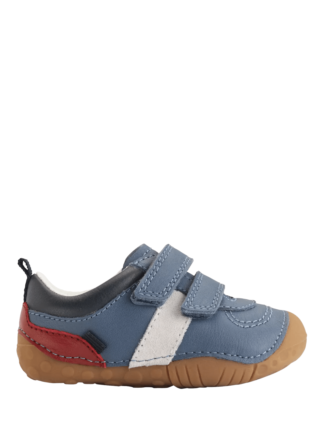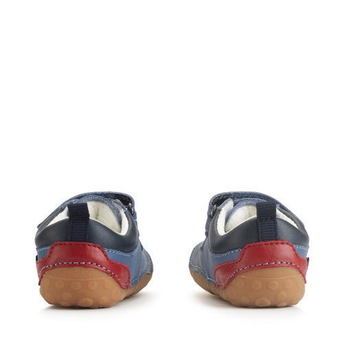Zap in denim blue offers a contemporary and sporty feel to our pre-walker selection. The two rip-tape fastenings make getting shoes on or off a dream whilst also allowing for an adjustable fit. The colour detail of white and red adds interest.
